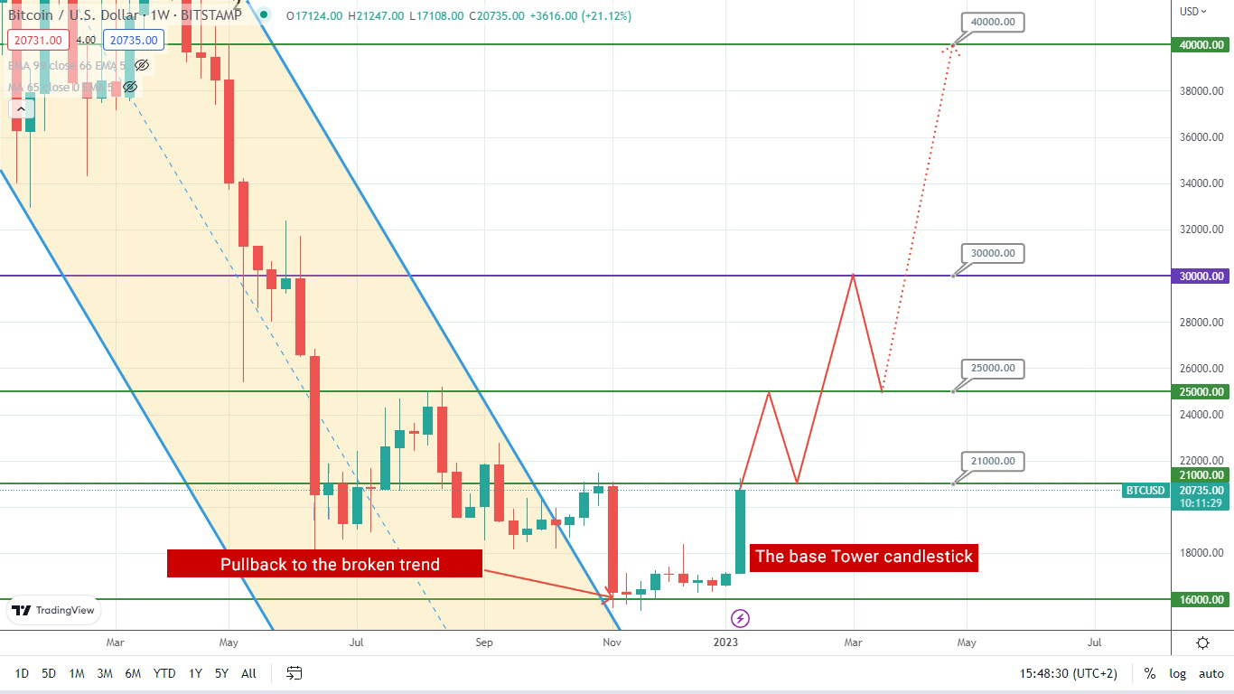 Should Bitcoin manage to break the level of 21000, it is likely to jump. Considering the width of the broken trend and the depth of Bitcoin’s drop, it is safe to say that the price of Bitcoin might potentially hit the level of 40000. Although to get the required momentum for the rise, the asset will have to break two more resistances at levels 25500 and 30000. So, let’s observe what will happen next.