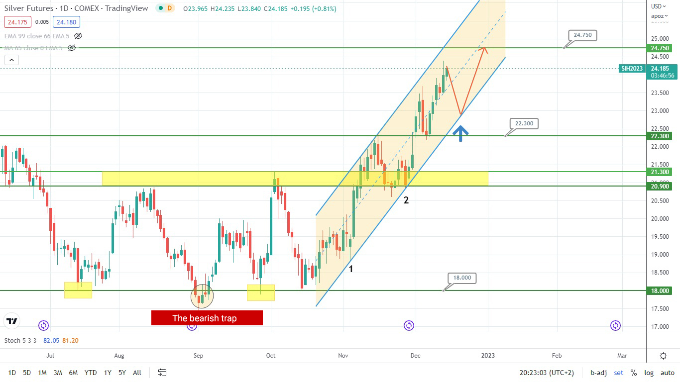 Silver is heading up. Hence, the asset might potentially undergo a small correction and pull from the uptrend.